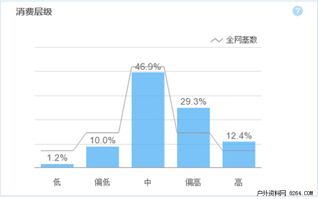 消费层级中可见,中级达到46.9%,有很大的成长空间。