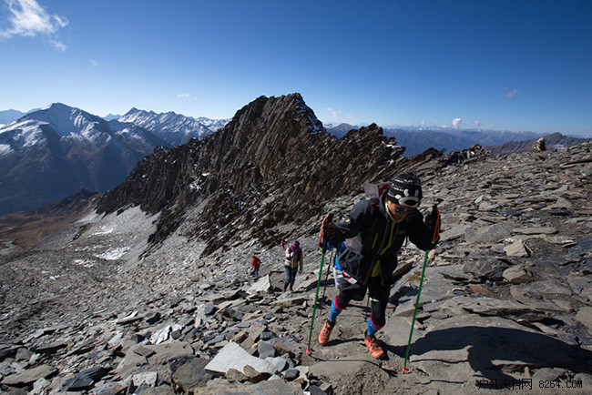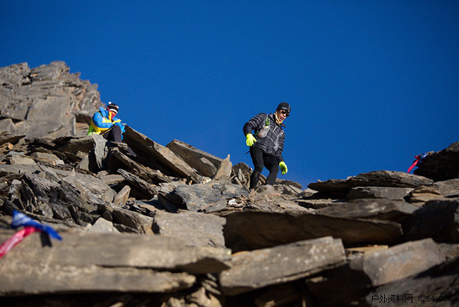 攀登大峰的路线上布满碎石,极大考验选手的技术地形通过能力。