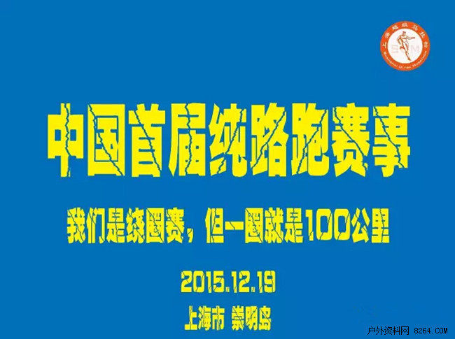 上海首个超马赛事 - 2015崇明环岛100公里超级马拉松赛将于12月19日在上海崇明岛开赛,设超马挑战组(100公里)和百里毅行组(50公里)两个比赛项目,起终点均设立于崇明县陈家镇瀛东度假村,路线均为环线,崇明环岛一圈超过230公里,本届百公里超马比赛选取了崇明岛东边的半岛环线,50公里毅行组则取百公里超马组的一半。