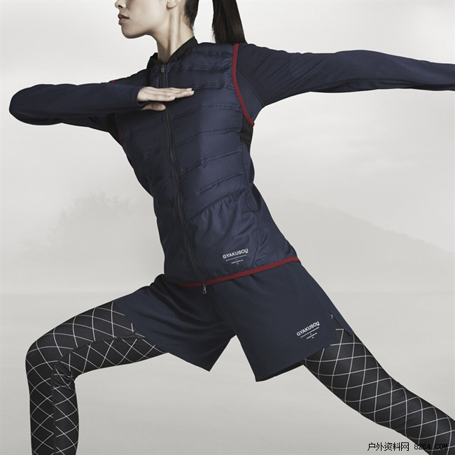 NikeLab Gyakusou Aeroloft背心可与NikeLab Gyakusou Long-Sleeve Sweat Map Shirt长袖T恤等搭配穿着。背心采用800蓬羽绒填充,为穿着者带来轻盈保暖的舒适感,激光打孔的通风设计有利于散热。这款长袖T恤的透气设计取自耐克研发团队运动研究实验室的人体出汗图数据。同样的,NikeLab Gyakusou Dri-FIT Stretch Woven Shorts短裤也采用了轻盈面料,而更多口袋设计也便于储存随身必备物品