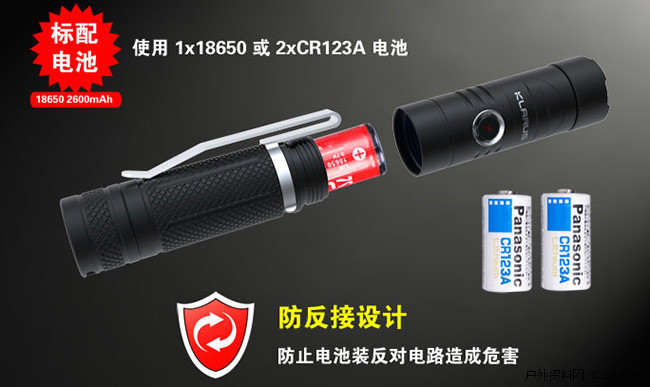 防反接设计,防止电池装反对电路造成危害。尾部超大平面,可平稳倒立当蜡烛使用。航天级铝合金材质,军工三级硬质阳极氧化处理,耐磨、轻便、坚固。主灯镜片采用钢化玻璃,镀AR膜,防刮耐磨。