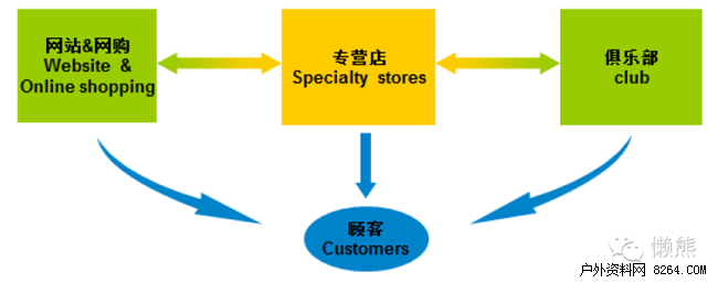 多年以来,三夫户外一直以美国的REI公司(Recreational Equipment, Inc.)为标杆学习借鉴。在运营模式上,三夫户外秉承“实体店 网店 俱乐部”的三位一体模式,以连锁专营店为主题,借助网络扩大销售覆盖面,通过俱乐部发展会员,推广品牌与保持用户粘性。