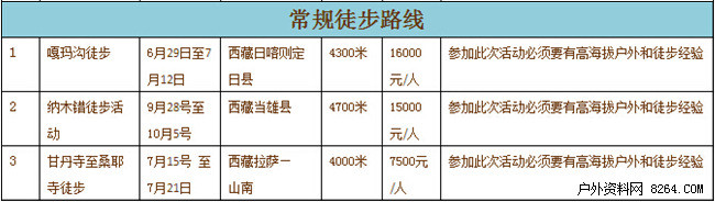 户外资料网(8264.com)讯,这两年无论南坡还是北坡,珠峰的攀登似乎都不太顺利,雪崩、地震都有发生。anyway,灾难终会过去,攀登还得继续。2016年想去登珠峰需要准备多少银子呢?根据西藏圣山探险公司公布的2016年圣山全年登山、徒步活动计划显示,明年春季北坡的攀登费用大概是33万元,其他8000米山峰,卓奥友峰费用是13万元,希夏邦马峰的费用是15万元。具体如下: