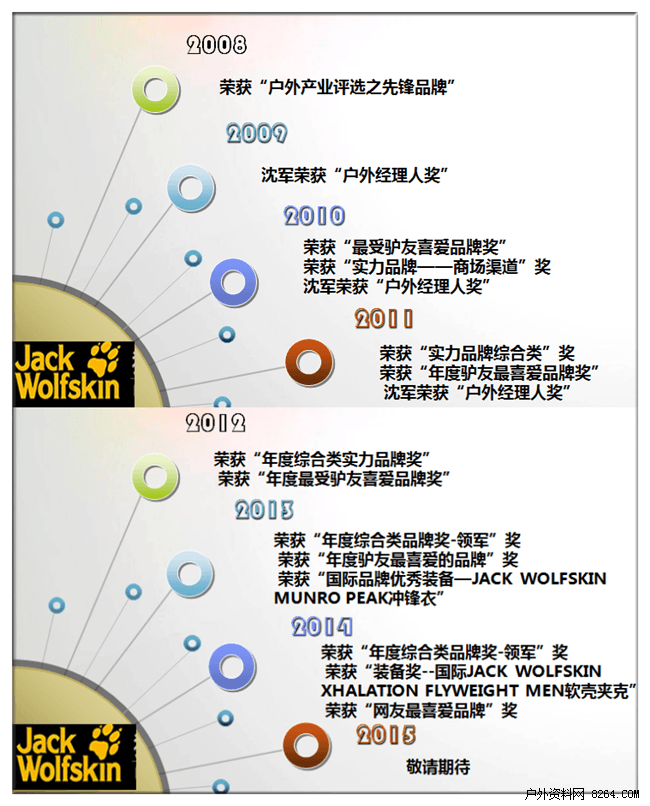 Jack Wolfskin自2008年—2014年连续上榜中国户外产业年度评选,中国区总代理上海联亚公司总经理沈军(网名狼一匹)连续获得“户外经理人”奖项, 。以下请看Jack Wolfskin上榜情况: