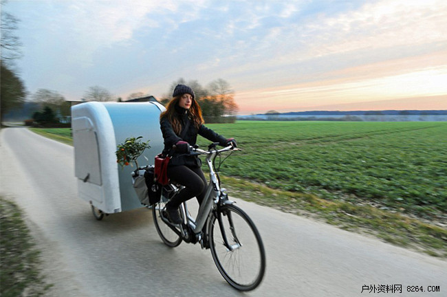 骑车回家吧!这里有一辆用自行车就可以拖走的迷你双人旅行车Wide Path Camper ,“车”里有床、有客厅、有厨房还有储物空间,车马劳顿之时就地可以卧倒一睡方休,或者尚存闲情逸致,做做饭喝喝酒也算是一种人生态度。