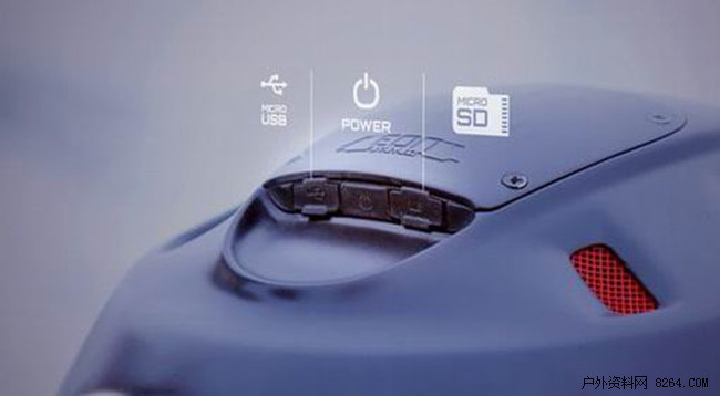 不过,这款头盔最大的亮点是内置了4K运动相机。相机被安置于头盔的前端,4可以拍摄1300万像素的照片和4K/30fps、1080p/60fps、720p/120fps的视频,还可以加装microSD卡