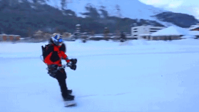 比如在位于瑞士圣莫里茨湖面的冰面测试中,运动员Jamie Barrow在仅靠喷气引擎作为动力的情况下创造了80公里/时的最高速度,威力相当可观。