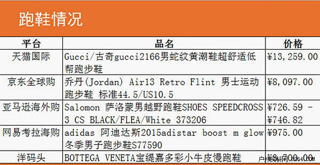 可以看出,相比天猫国际的上万人民币价格,京东全球购的甚至有种“降价打折”的错觉。最让人意外的是亚马逊海外购,这个大佬上跑鞋价格十分亲民。