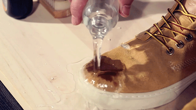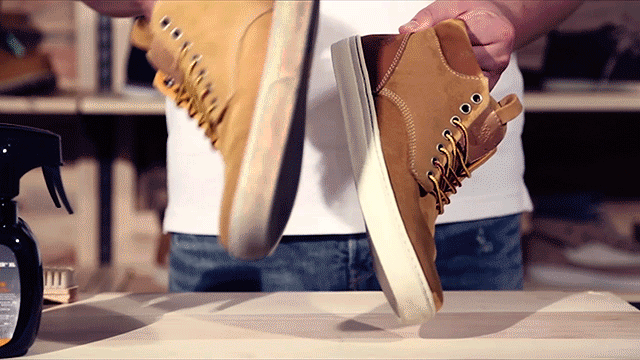 当水倒到鞋面上,无法形成珠状水滴自动滑落时,就是该使用多功能保护剂的时候啦~