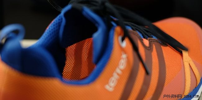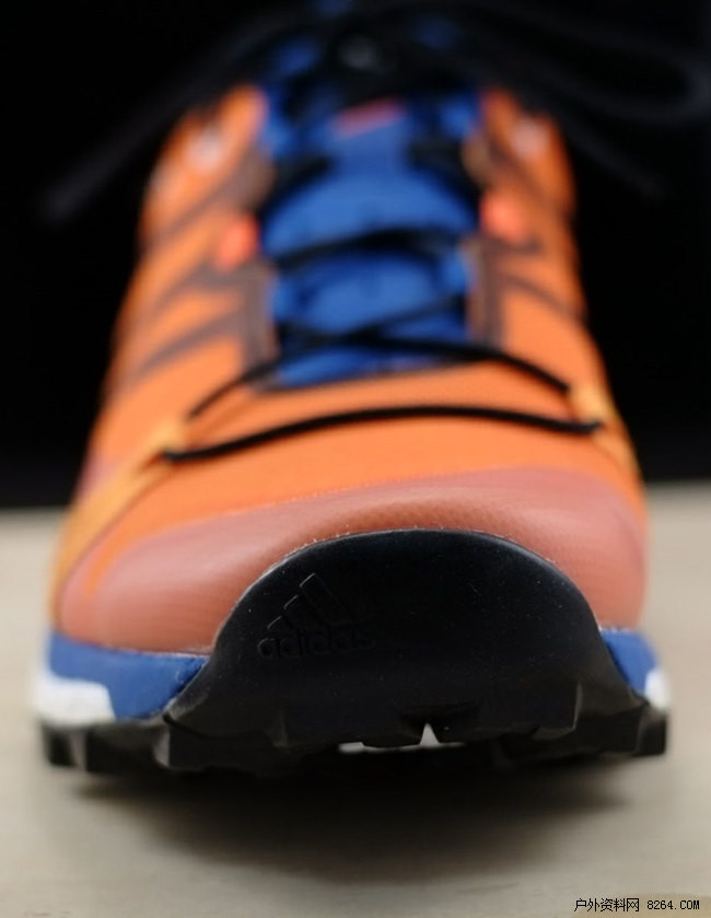 鞋头保护包裹性很好不过外侧延伸并不足,鞋头防踢保护只有顶部,配备Protection Plate前脚掌防护垫片,在山地条件下,防止岩石穿刺,提供额外保护。比较遗憾并没有adidas terrex boost gtx上的快速系带设计。
