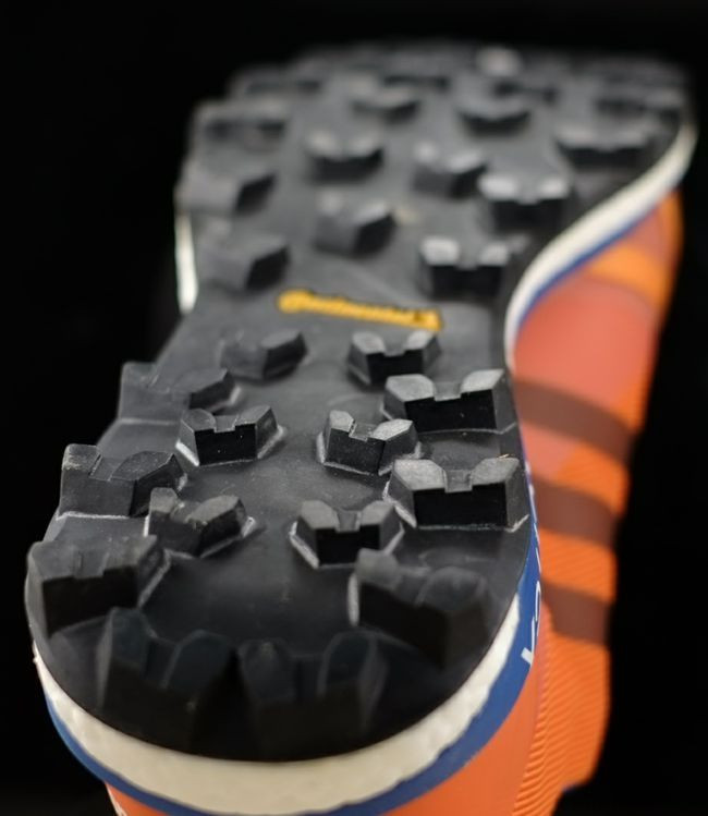 这双鞋子虽然在配置上减少了一些但是它更加的纯粹,丝毫没有妥协也就是说它不能和 terrex boost gtx偶尔充当一下徒步鞋来使用,至少在冬季是不可以的。它包裹性优异这点和攀岩鞋类似足弓左右贴合很紧如果单单是鞋底的摩擦力优秀不足以做到防滑,鞋内的打晃也是致命的,尤其是越野跑鞋。