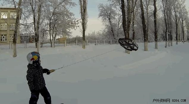 从视频中可以看到,这个四轴无人机后面拴着一根吊环,小男孩身穿滑雪服脚踏滑雪板,手中握着吊环。当男孩爸爸遥控无人机起飞后,小男孩顺着无人机的力量开始在地面上滑行。开始有些磕磕绊绊,但动作娴熟之后,男孩开始顺畅的滑行,姿势颇有像在海上借助风中冲浪。