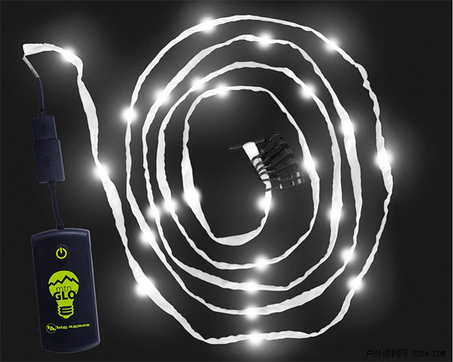 LED灯的增加,对于帐篷的重量几乎没有什么影响,需要使用AAA电池或者USB电源进行供电。比如广受好评的UL2+,加上LED灯的重量也不过1.65kg左右,比大多数其他厂家的同级别产品更轻。LED灯沿着帐篷的顶部帐杆布局,可以给帐篷提供明亮或温馨的灯光效果,让帐篷更有家的感觉。Big Agnes也提供了价值39.95美元(约合258元)的mtnGLO LED灯配件包,包括一根LED灯绳、挂件和遥控器。