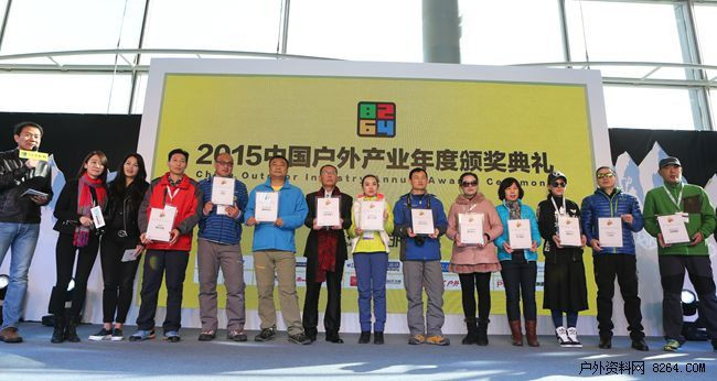8264官方论坛资深会员,创2000万帖子点击,知名低调旅行家探险家杨柳松、8264资深户外运动达人,登顶珠峰的中国女探险者梁丽芳、8264市场总监宋雅雯为获奖者颁奖。