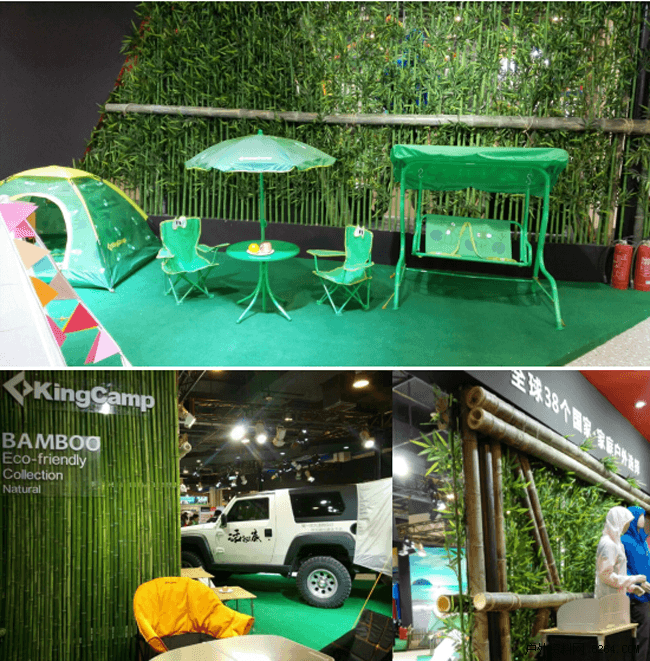展会现场KingCamp产品及陈列均突出竹子,引导人们关注户外环保,在户外出行中,在走进自然欣赏美景时,在体验到优质户外装备带来的舒适感时,要记得保护环境,努力保持自然的原貌,把你欣赏完的美景完整完美地留给别人。