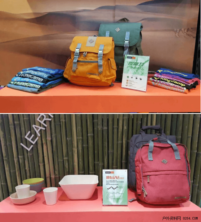 KingCamp把传统的竹制品运用到户外用品设计中,不仅使用天然竹作为桌面,还从中提炼天然竹纤维作为服装、毛巾、背包等的面料,符合绿色环保可持续发展的同时,也将竹炭吸湿快干、消除异味的功能运动到户外装备中去。其中拥有记忆的面料和炭魔力户外新活力的科技系列产品,也在展会现场进行逐一展出。