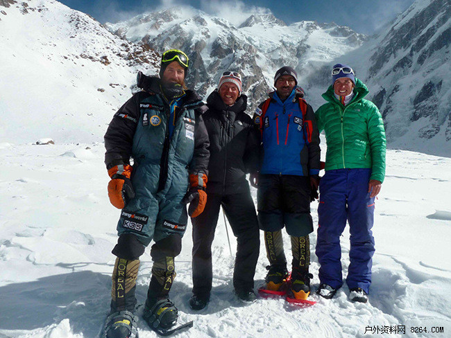 另外一个重要的信息:大本营报告了人们期待已久的消息(当地时间约20:00,欧洲中部时间16:00),四名阿尔卑斯登山者回到海拔7,100米的4号营地。从4号营地出发约14个小时,离开大本营5日之后!Lunger,Moro,Txikon和Sadpara现在需要完成最后的重要步骤。还要在山峰上停留另外一个夜晚,另外一日(或两日)。他们(和我们)对始于预报显示天气状况不错深感安慰。我们将在大本营等待他们返回,直至那时一切才真正结束。同时值得注意的是,此次登顶展现出,对于四名阿尔卑斯登山者之中每一位(我们愿意把Tamara算在三名成功到达山峰顶端的登山者之中),这绝对是一个辉煌的成就。对于Simone Moro,这是继希夏邦马峰(2005年),马卡鲁峰(2009年)和迦舒布鲁姆II峰(2011年)之后,他在海拔八千米级别山峰实现的第四次冬季首攀。没有人的表现可以与之匹敌!