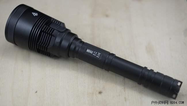 先从造型和体积谈,MH41产品比较倾向狩猎执法和战术应用所以看上去有些“军警”挺酷的,拿在手上特别有感觉。重量有点头重脚轻,没有攻击头,可它的筒身很长外加上头部重量够,真要动起手来这就是一个“大头甩棍”有木有。