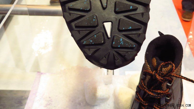 实际冰面上体验Arctic Grip鞋底的止滑神奇效果,以往只能利用钢钉或冰爪抓地的表面,现在只要穿着有Arctic Grip技术的鞋款就可以轻松在冰面这样的超滑表面行走。
