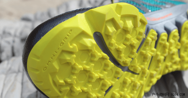 鞋底纹路也是细胞分裂式的仿生设计,简单勾勒,美观大气,纹路一致指向鞋子内测 也是导泥的方向,这样即使因为排泥鞋子向外滑也不至于打破自身的平衡。鞋钉的分布有聚有散,能很好的保证防滑性能。