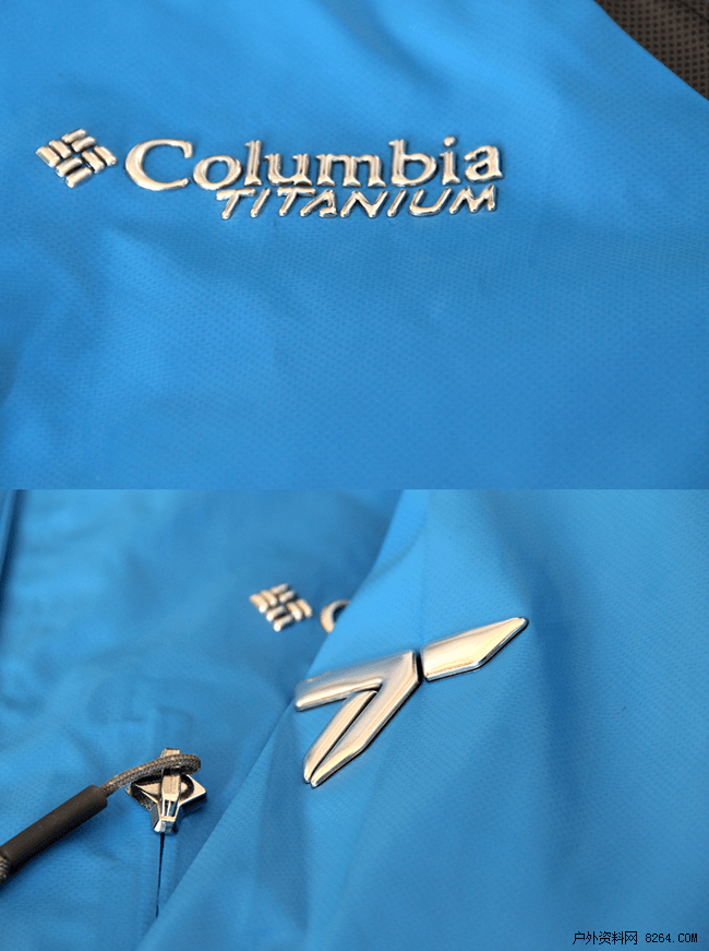 在衣服的右侧前胸和背部都带有银色的Columbia TITANIUM标识,衣服的左侧袖口上带有TITANIUM系列LOGO标识,LOGO标识的选材完全提升了这件夹克的品质,可谓是点睛之笔。
