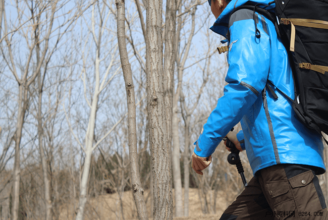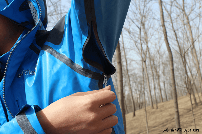 户外出行体验:室外温度5-12度,微风。出行负重15kg,上升海拔800m,连续徒步2个小时。闪亮的蓝色成为了北方新春伊始的空旷户外中的一道亮丽风景线,衣服立体剪裁很合身,没有任何束缚性,透气性能优良,衣服内部始终保持干爽。拉开门襟拉链即可达到衣服内部空气的循环。整个徒步活动过程中小编没有打开腋下透气系统,不过也是因人而异。出于整件衣服的绝对防水性能的需求,拉链的贴合密封度也是要求非常高,因此衣服的拉链在收拉的过程中需要多用一点力气,但不影响整个拉链过程中的流畅性。最后一点小建议是:肩部的黑色区域可以考虑做一下印花防滑处理。