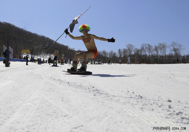 3月13日,长春庙香山滑雪场,每年的雪季即将结束之际,来自长春及周边城市的滑雪发烧友们来到这里,举行一年一度的滑雪盛会,“光猪”滑雪节。二十几名滑雪爱好者们穿着奇装异服,或比基尼,或卡通人物,滑雪技术好坏没关系,只要穿的酷、玩的炫,就能攒足观众眼球。