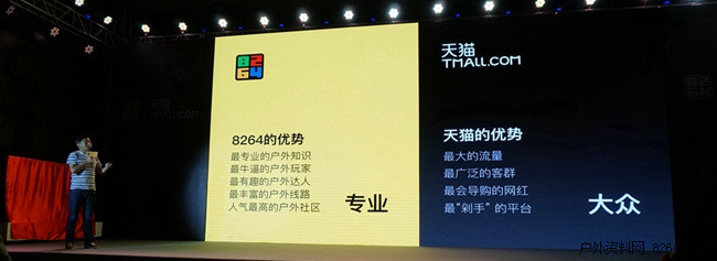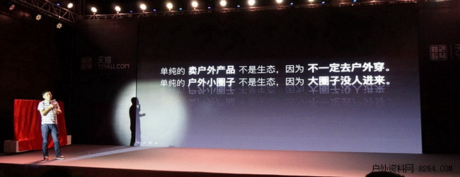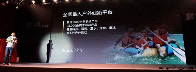 8264与天猫的合作是要做户外生态圈。单纯的卖户外产品并不是生态,很多人买户外产品并不是为了去户外;单纯的小圈子也不是生态,因为大圈子没人进来。
