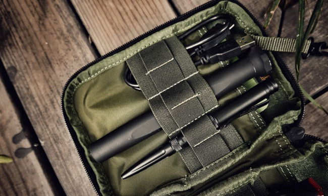 如果是使用中号的整理包就可以放置大一点的东西,就算把充电宝或者是移动硬盘放置进去拉上也没有问题,搭配就看个人了,选择比较多。我的东西包括:数据线、保罗特勤甩棍、纳拓战术笔、喷雾、火机、TA10手电、笔记本和移动硬盘、额外还有很多空间可以增加备用电池等。