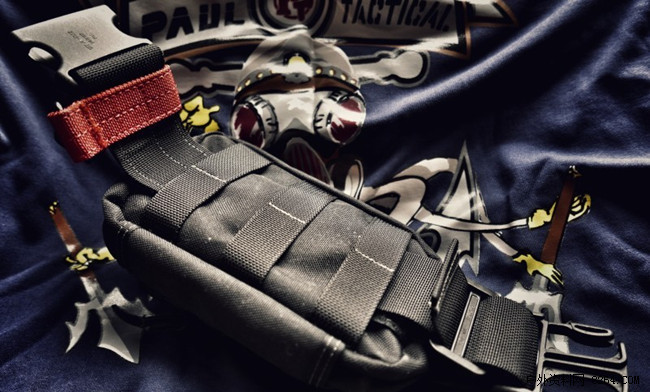仔细看的话包得下部还能放东西,战术笔、保罗特勤放进去都没有问题,其他棍子可能放不进去。包的插口带子是带魔术贴的,不会滑动。红色的是自己的特勤背包锁扣。