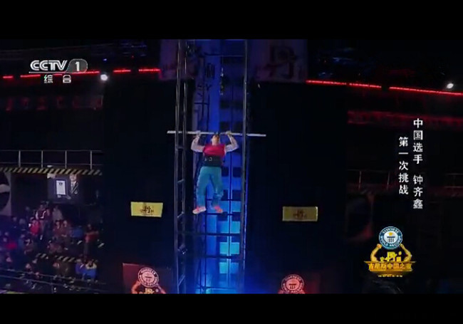 在2016《吉尼斯中国之夜》的一期比赛中,世界速度攀岩名将,“中国壁虎”钟齐鑫挑战七米爆发向上纪录保持者塔吉奥·格维雅尼,仅靠手里的一根木棍以“爆发式引体向上”向7米高处快速攀爬,高能表现引得全场惊呼……