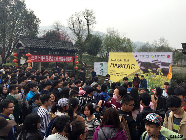 本届赏花大会由8264户外资料网、黄山徽毛驴俱乐部主办,呈坎景区、齐云山景区、花山谜窟景区、新安江山水等共同协办,活动日期3月12日开始持续到4月15日,四条经典赏花线路(线路一:呈坎—蜀源灵山—新安江山水画廊;线路二:齐元山—呈坎—蜀源灵山;线路三:篁岭—花山谜窟—蜀源灵山;线路四:齐云山—蜀源灵山—花山谜窟,活动地点:皖南、黄山、婺源)覆盖了皖南、黄山、婺源等地最美油菜花景,目前赏花活动持续进行中,截至3月19日参与人数已超万人。