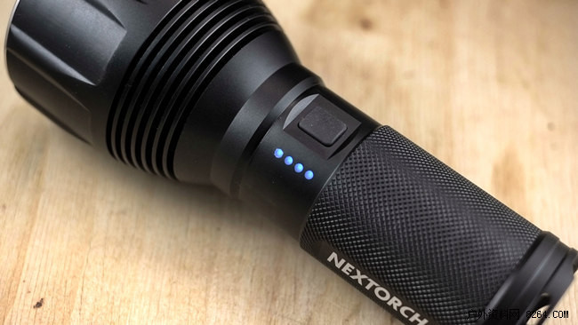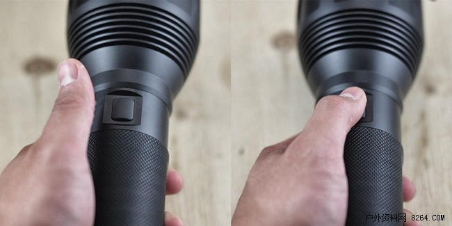 圣火10键程略长但是手感轻巧,按下切换时无过硬和接触不良等现象。这种开关使用户可以单手即时开启超低亮或超高亮,心随所动,另外一个多功能指示灯除了在黑夜提醒用户电筒所在位置,更能通过闪烁次数简单提示用户剩余电量,让用户在户外使用时不需要依赖任何仪器即可及时知道电池状态。
