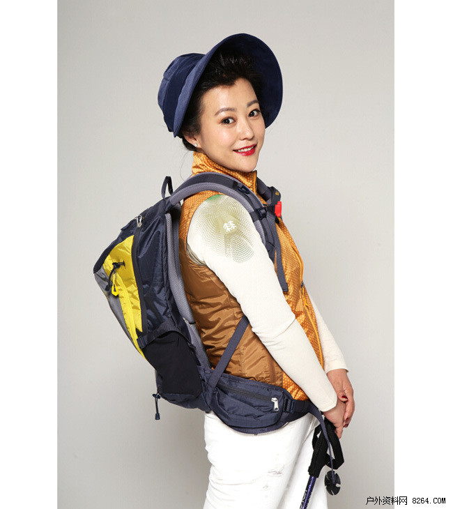 郝蕾身着KOLONSPORT夏季女士双色感防风马甲,采用具有光泽感防风面料的女士休闲防风面料,两种不同色差交相呼应,呈现出一种金属感。肩背KOLONSPORT男女共用徒步背包,变型TEARDROP款式使其在种类繁多的登山背包中脱颖而出,内部口袋及腰带储物系统可以收纳各种物品。