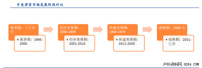 类比美国的发展经验,中国滑雪产业正处在类似于美国滑雪行业高速发展期的前10年,这种高速增长的态势可能继续持续十年。据不完全统计,目前中国滑雪市场每年产值约120亿元,美国冰雪市场的体量约1200亿元,滑雪人次在6000万左右,滑雪人口占比约为2.5%。依此估算,按照中国经济发展和消费水平提高速度,千亿市场规模并不遥远。预计到2022年,中国滑雪场数量将达到1100左右,滑雪人次接近4000万。