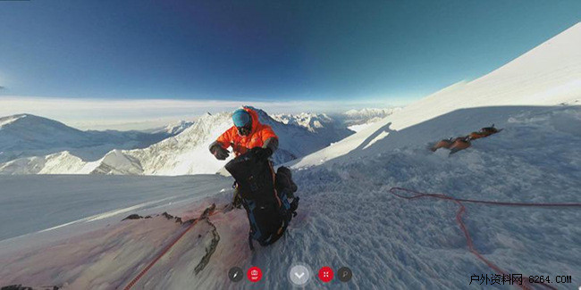 海拔7989m的C4营地,这是#project360团队成员在冲顶之前进行休息的地方。尽管可以吸氧,但在这样的海拔高度仍极易疲劳,冰爪手套绳索等随身装备的重量在此处也都会给队员造成压力。而对于本次攀登队伍来说,除了考验自己的高海拔攀登能力之外,还担任着全程全景记录的重任。#project360 发起人Taugwalder和Mammut猛犸象一起研发并测试了此次珠峰拍摄的系统,保证机器可以在极限环境下持续工作。但队员还需要不时检查摄像机,随时做好应对设备在高海拔地区出现临时故障时需要修复的挑战。