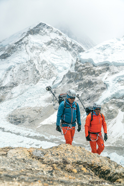 首先,离开大本营后的第一个挑战:穿过变幻莫测、不断移动的昆布冰川(Khumbu Icefall)。冰塔、冰壁和冰裂缝组成迷宫一样的路线,因为自身不断运动使得2.6km的长距离攀登变的更加难以预测。之后,#project360团队又花费了2-3个小时穿过西库姆冰斗(Western Cwm),这里因其变幻无常的天气而声名狼藉,温度可以在短短的一个小时内突然降到零下40℃。团队们最终克服困难,成功的穿越到达了C2营地,也被称为前进营地(ABC)。继续向上,陡峭冰封的洛子峰成为挡在队员前面的一道险关,平均坡度达到了40°-50°,要想顺利通过,装备精良与队友间的信任变的极为重要。