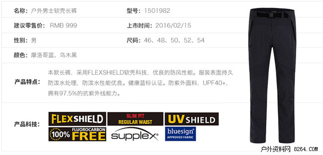 SUPPLEX快干防晒面料,一般用于裤装上,UPF40+,拥有97.5%的防紫外线功能。