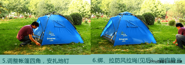 第三步:一扎一绑,即扎地钉,绑风绳,帐篷就搭建好了。