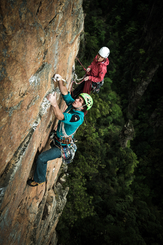 张家界是中国第一个而且是规模最大的国家公园,俨然一个矗立着无穷无尽砂岩巨塔的迷宫。他们是第一批涉足这些垂直巨石的探险队员。清风峡坐落在湖南省的中央,历史悠久丰富,是全国最负盛名的自然保护区之一。虽然它有着悠久的历史,但是公园的管理条例却阻碍了攀岩运动员探险张家界数不胜数的橘色砂岩巨峰。此次攀登的目标是利用所能找到的最小固定点来攀登山峰的岩面,保持大自然的完好无损。