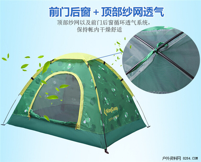 前门、后窗,顶部纱网透气,打造循环透气系统,保持帐内干燥舒适。