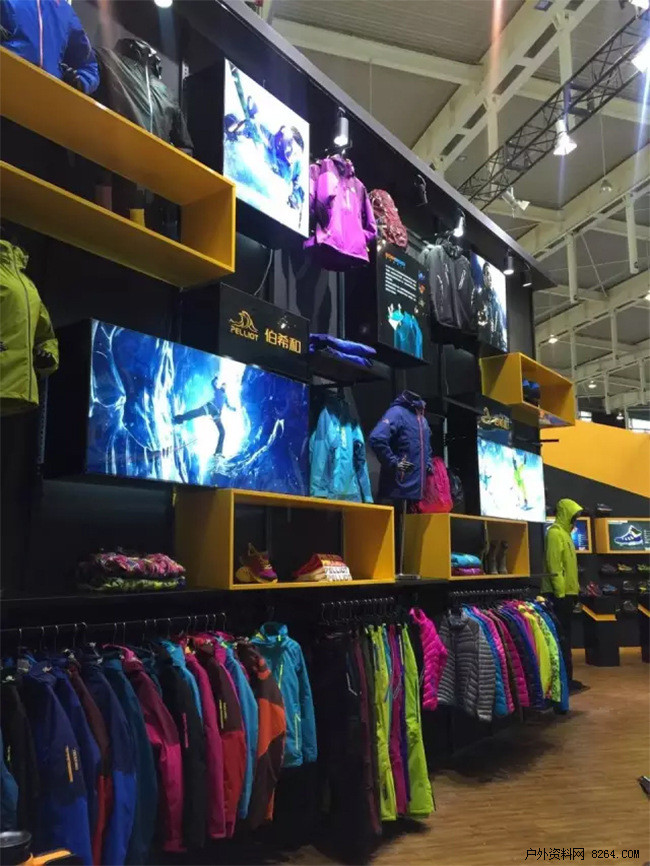 此次南京亚洲户外展伯希和选择了210平米的巨大展位,不仅在面积上位列亚展参展品牌前茅,潮流前卫的设计更是引来了户外迷们的一致好评。开放式的展位、纵横向上的Logo及隔板、热情沉稳的黄黑色调陈列架,传递着伯希和倡导的勇于挑战、突破自我的户外精神。正面入口处设计的巨大LED屏,不断播放着伯希和最新科技大片和四大科技系列讲解,让户外迷们大过眼瘾、挪不开脚步。