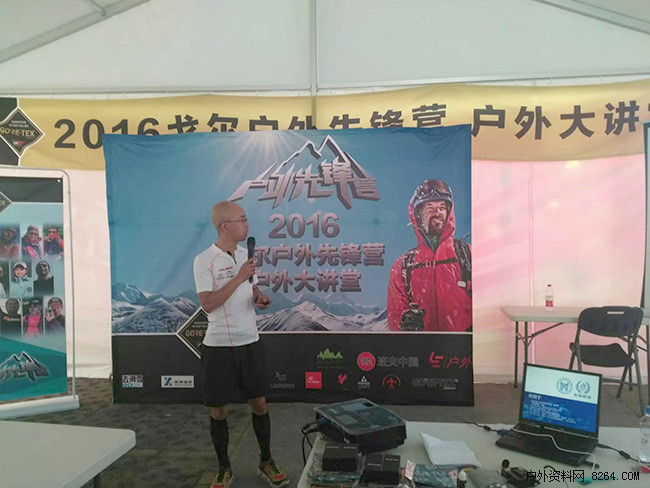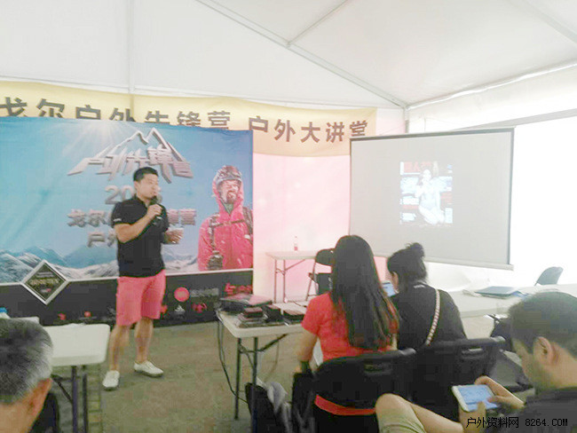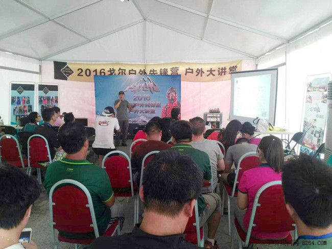 《横断天路--互联网时代的地理发现》 资深登山人公益人十一郎老师正在分享 本届活动除了邀请到了众多嘉宾讲师之外,戈尔特斯品牌的众多重要合作伙伴8264、乐视网、三夫户外、《户外探险》杂志等也积极参与到此次大讲堂中来,户外联盟的伙伴巅峰探险、悦跑圈、磐拓户外、优选商会、壹季体能训练营、GOSKI、破风骑行、凯撒旅游等也在大讲堂场地周围,搭建起了装备体验及展示区,让所有户外爱好者不止能在户外大讲堂中学习到有用的知识、吸收宝贵的经验,同时也能直观地接触到更多更专业的尤其是使用戈尔特斯?面料制作的户外装备。