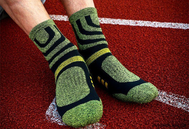 首先,一定要有垫,就是在袜子的底部要有象毛巾一样的圈,所以又叫毛圈。毛圈的主要作用是增加鞋与脚之间的弹性,同时,也充分加大了袜子材料与空气接触的面积,使之有更好的吸湿排汗性,当然,吸湿排汗性的体现和材料也有很大的关系。针对不同强度的运动,毛圈的高度、密度和部位应该是有所不同的。在高海拔的