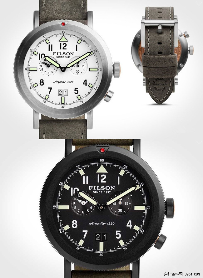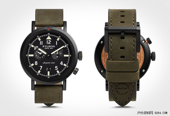 Filson 最近推出全新腕表系列「Scout Dual Time Watch」Scout双时间腕表,灵感来自经典的二战飞行员腕表。手表拥有 45.5 毫米哑光黑大表盘和PVD镀层精钢打造的表壳,采用六枚螺钉固定,看起来相当不错,防水能力达到水下660英尺。