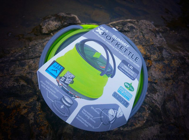 从包装来看,简单大方。我们读取包装上的内容,首先可以获知的这是一款拿奖的产品。的确 Sea to Summit - X-Pot 折叠锅水壶(锅)的设计颠覆了传统的“锅”的概念:锅身采用柔软且耐热的硅胶作为材料,不用的时候能轻松折叠压缩成小盘,撑开后又能很好的保型,有效释放背包空间。