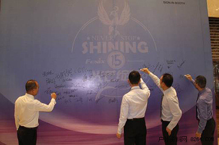 随着分享会的结束,大会在隆重而热烈的气氛中圆满完成了各项议程,"Fenix 15周年经销商大会暨2016-2017新品发布会"圆满落幕。本次会议恰值Fenix公司成立十五周年之际,对于经过15年沉淀的Fenix公司来说,从创业初期的艰难,到立足市场的坚守,Fenix公司并没有因为完成了生存,而选择性忘记过去。如今,Fenix公司以全新的姿态面向全球经销商,传达出与合作伙伴并肩驰骋天下、携手共创未来的希冀。这次会议将促进Fenix公司的再次腾飞,开创户外运动照明工具市场改革发展新局面。相信,Fenix的下一道光芒会继续闪耀。