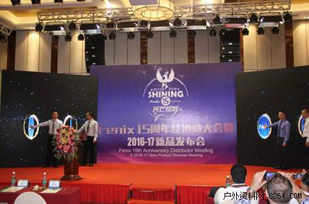 上午9点,在主持人对来自全球各地的Fenix经销商朋友、供应商朋友以及长期支持Fenix品牌的户外专业人士表示欢迎后,随着创立和带领Fenix持续发展的四位董事会成员董事长苏辉云先生、总裁岑超凡先生、董事杨建旭先生、董事岑亮先生上台触摸启动按键,15周年庆系列活动正式拉开帷幕,"Fenix 15周年经销商大会暨2016-17新品发布会"也正式开始。整场会议主题突出,议程紧凑。首先,朗恒公司董事长苏辉云先生上台致辞,带领大家重温Fenix品牌创业史;随后,朗恒公司总裁岑超凡先生作了关于"十五年光芒绽放--企业回顾与展望"专题报告;紧接着,在这个弥漫着朗恒公司十五周年气息的盛会上,Fenix F15等系列新品亮相大会;最后,经销商和户外专业人士进行分享。
