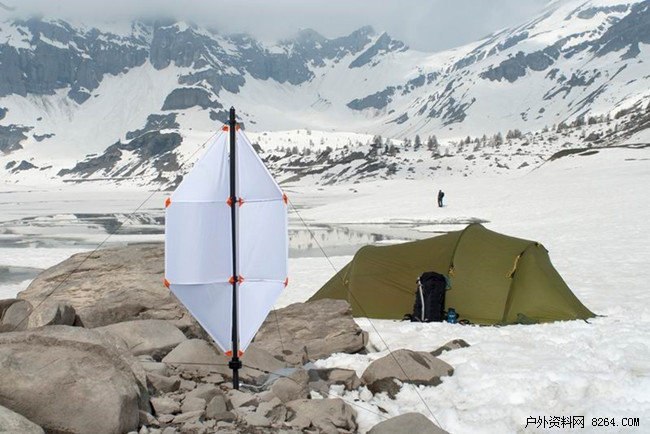 相比太阳能,风力发电机的一大优点就是能够昼夜不停地发电。它的立轴转子部分借鉴了桶形汽轮机的设计,可以收集各个方向的风,也提高了可承受的风速范围,经过测试,它能在风速为 18km/h 的和风中,提供持续 5W 的电力,即使在低风速下也能有 40% 的电能输出。