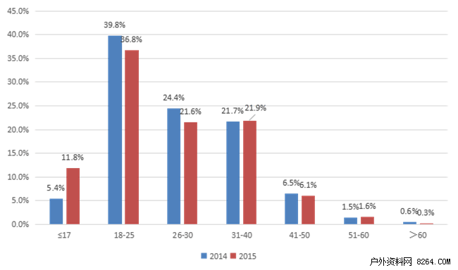 由上图可见:17岁以下的骑行爱好者增加明显。